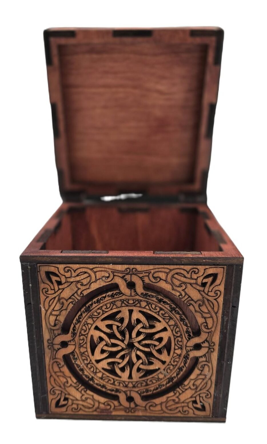Wow- What a beautifully intricate, multi-layered 5″ x 5″ box! Each side features delicately engraved details, creating a stunning Celtic design that’s meaningful as is elegant. A perfect place to keep your treasures safe and cherished.