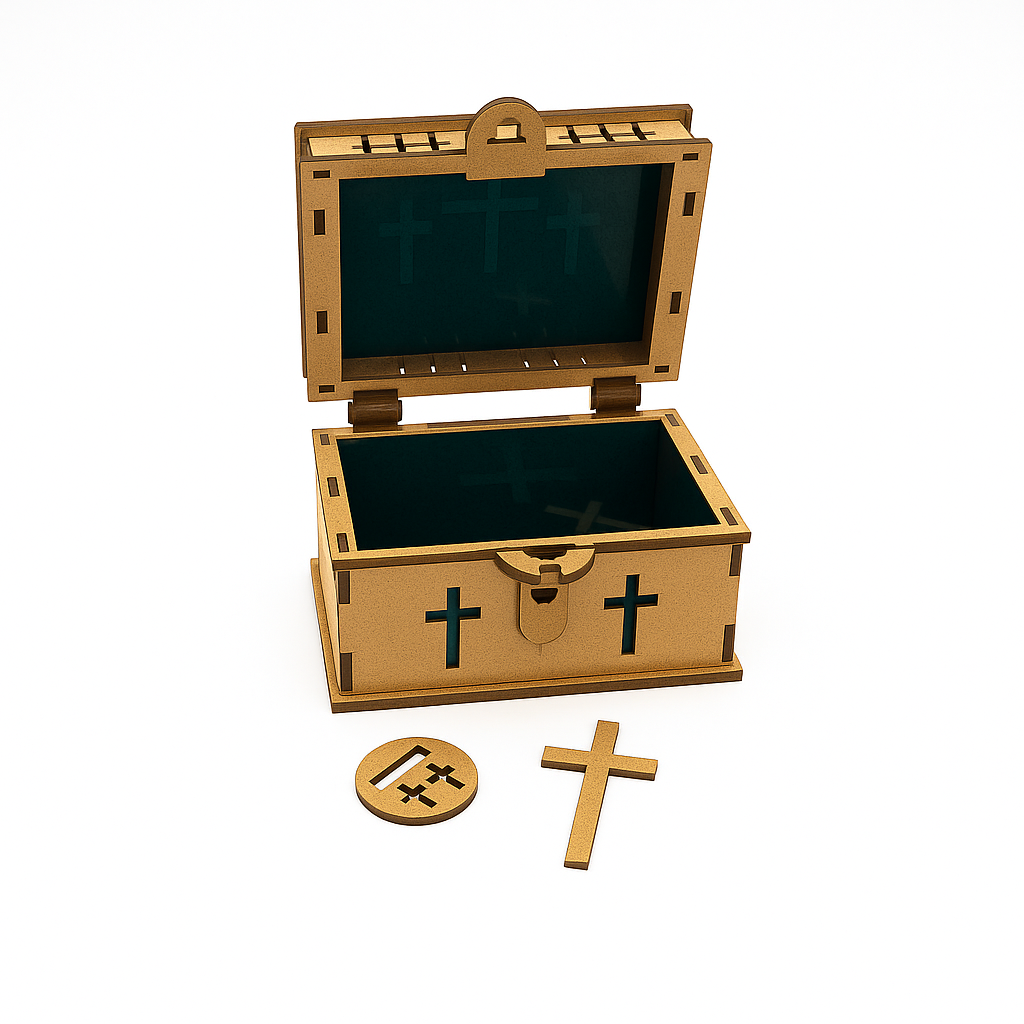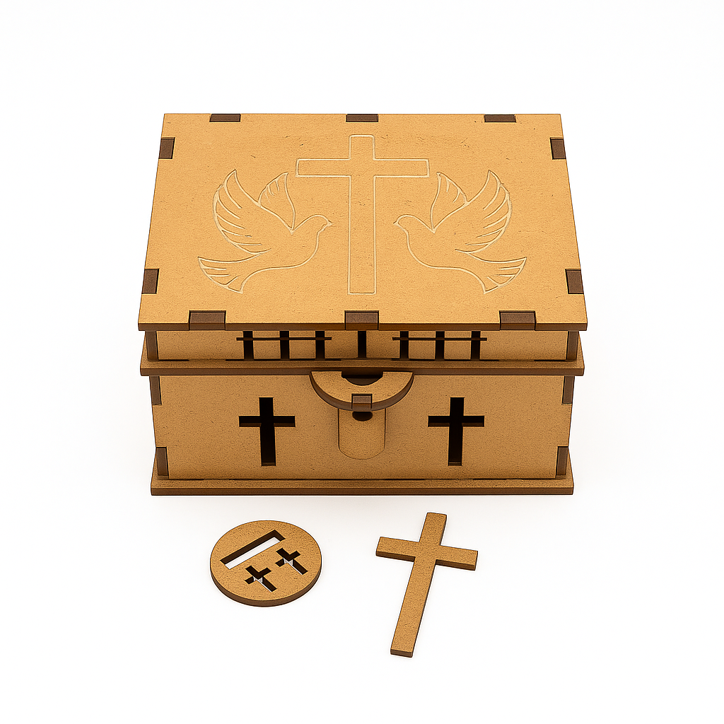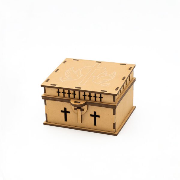 The 4″ x 4″ Faith box is delicately laser engraved with doves of love and sealed with a wooden Cross clasp. Within, another cross rests- ready to cradle your most cherished memories and tokens of the heart.
