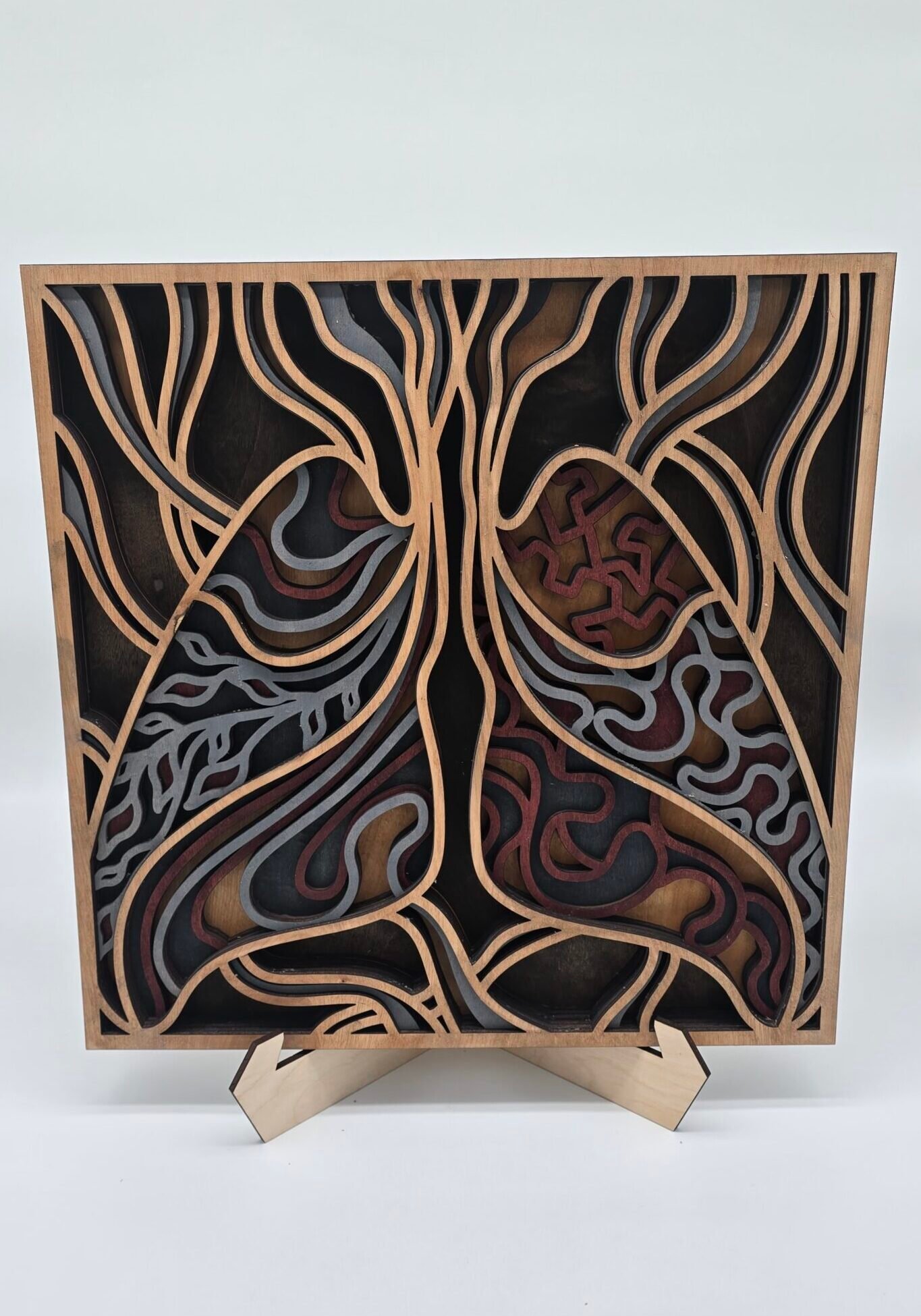 Handcrafted Wooden Lungs bring anatomy and artistry together with this beautifully detailed multilayer wooden lung display. Each layer is carefully crafted and hand painted to highlight the true structure and details of the lungs. Making it a meaningful piece for pulmonologists, respiratory therapists, breathwork coaches, or anyone passionate about the healing power of breath.